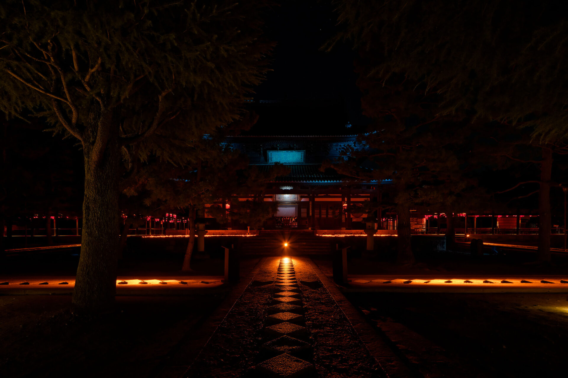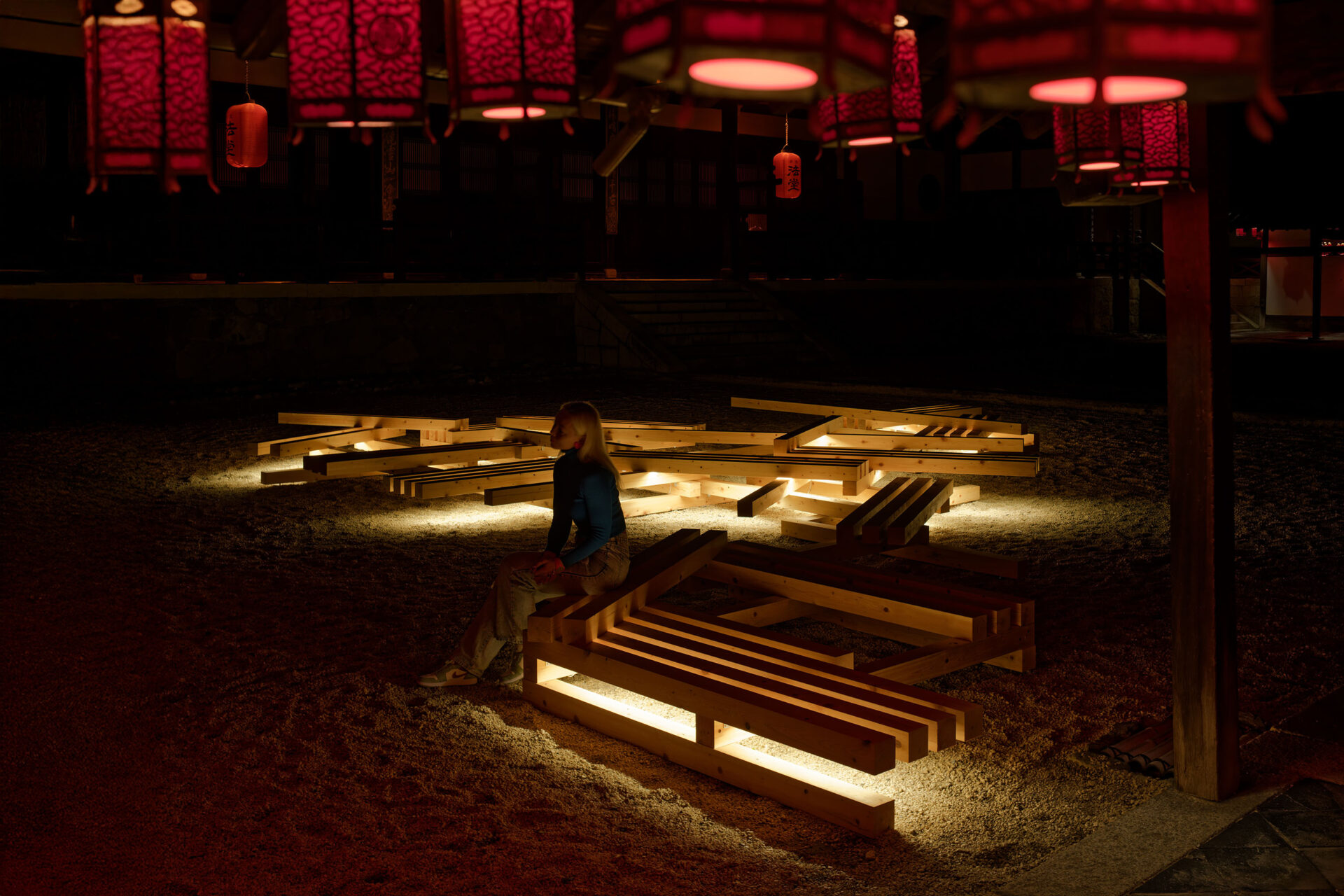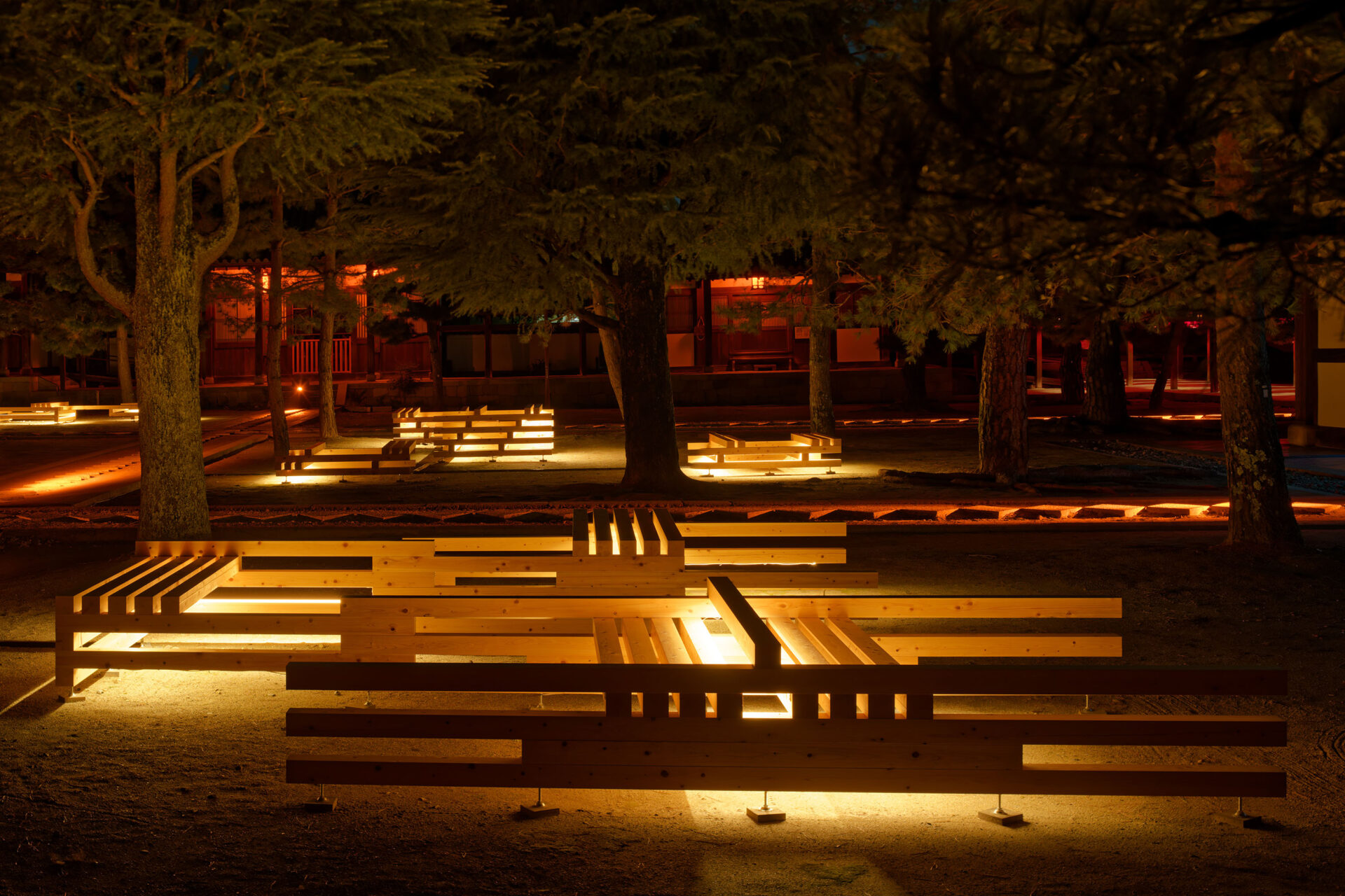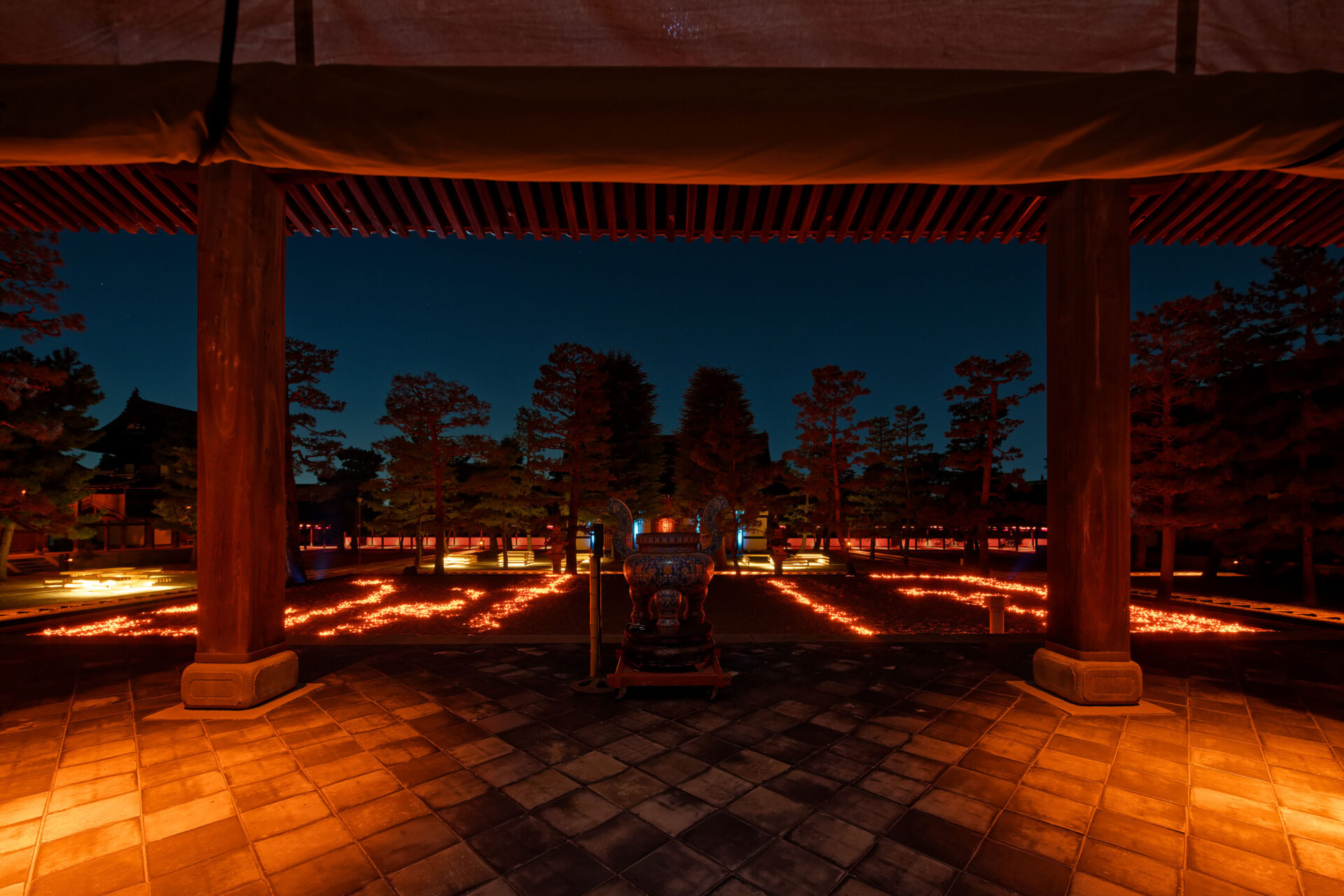 Die in Kooperation zwischen dem Architekturbüro GENETO und dem Lichtplaner Frank Vetter entwickelte Inszenierung verzichtet bewusst auf Dekoration. Allein das Licht bildet – wie eine Manga-Zeichnung oder ein Gemälde auf nachtschwarzer Leinwand – die Besonderheiten der Tempelgärten und Gebäude heraus.