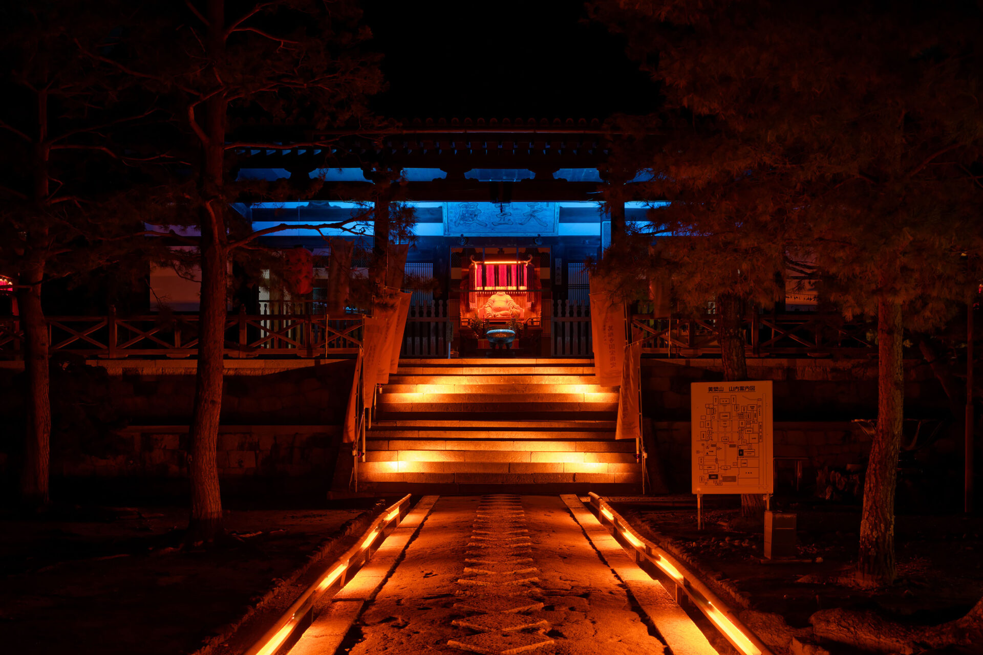Im Jahr 1661 gründete der chinesische Mönch Ingen Ryūki Zenji den Zen-Tempel Manpuku-ji. Die Anlage, deren Grundriss und Architektur dem Stil der chinesischen Ming-Dynastie folgen, wurde kürzlich zum Nationalschatz erklärt. Zwischen November 2025 und Februar 2026 wird sie durch eine besondere Lichtinstallation gewürdigt.
