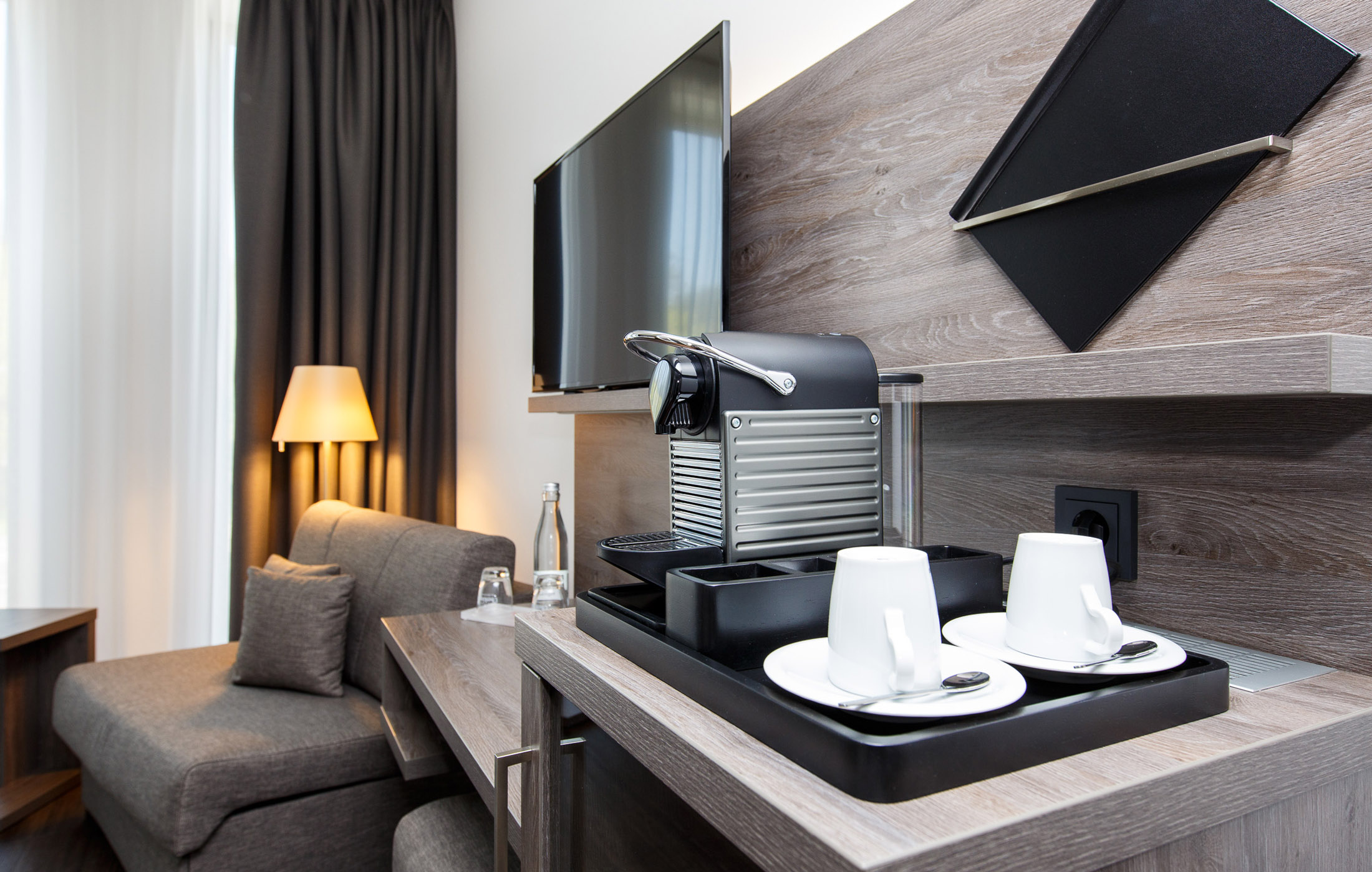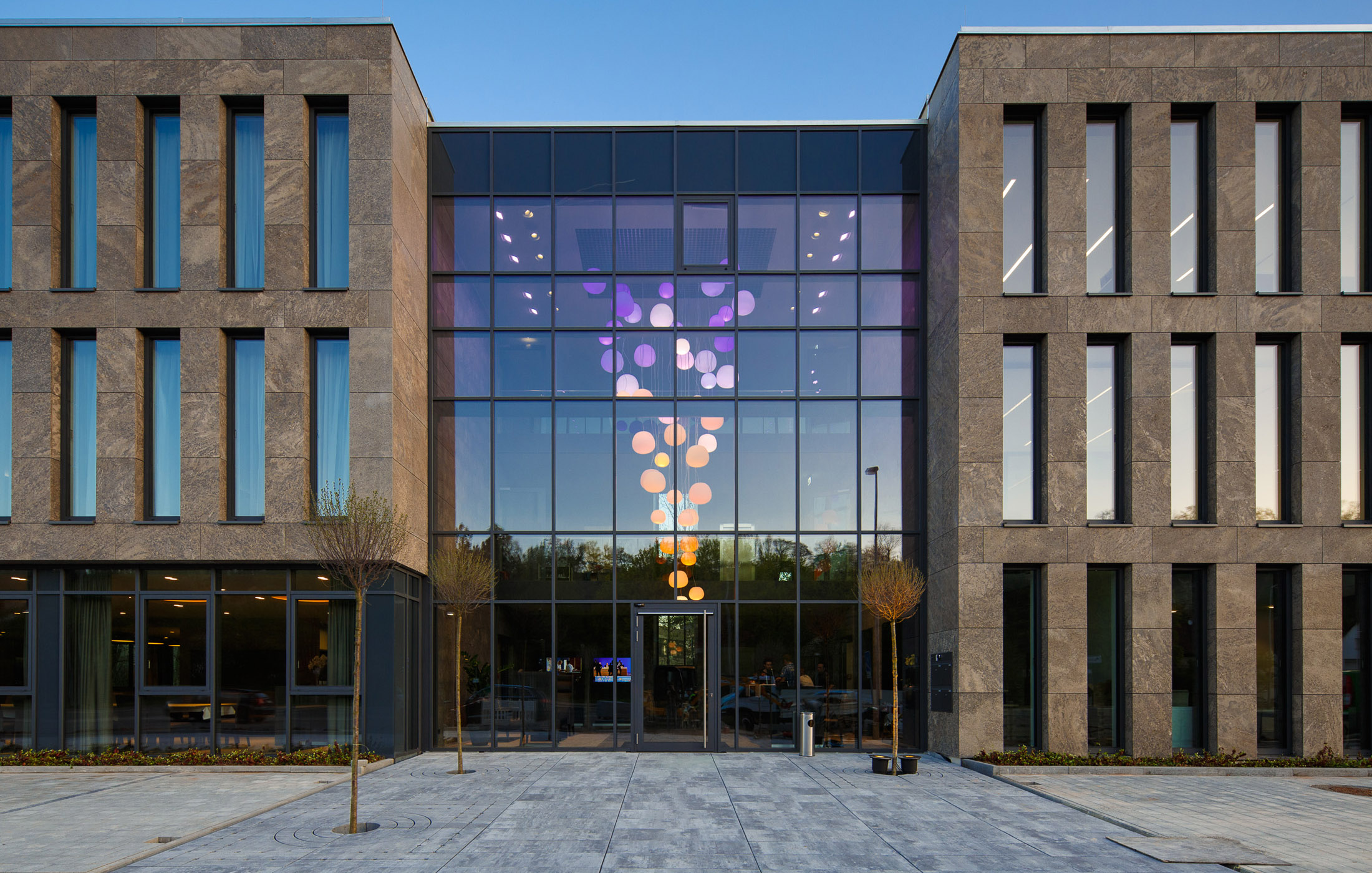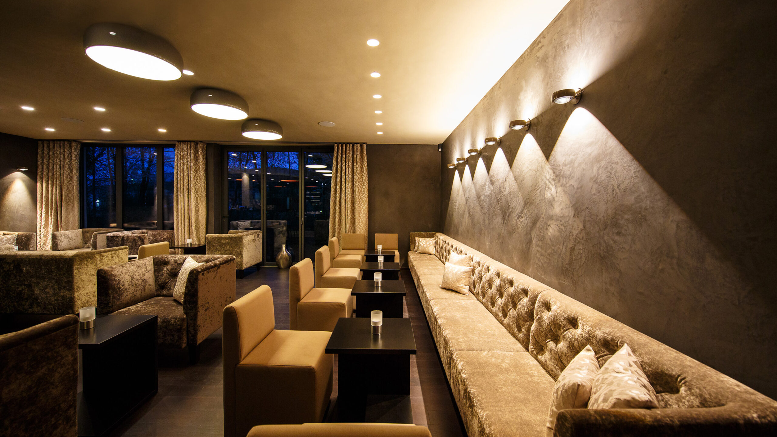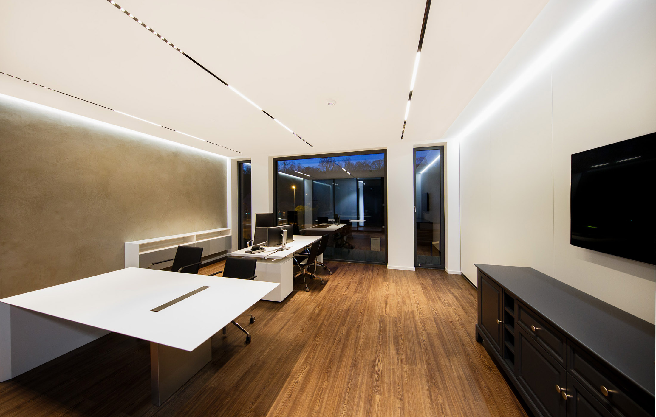 Die Büros, Schulungs- und Konferenzräume sind mit Langfeldleuchten ausgestattet und bieten einen hohen Lichtkomfort. Im Restaurant und der Lounge verändert sich das Lichtambiente über den Tag hinweg von freundlich hell bis gediegen und intim am Abend.