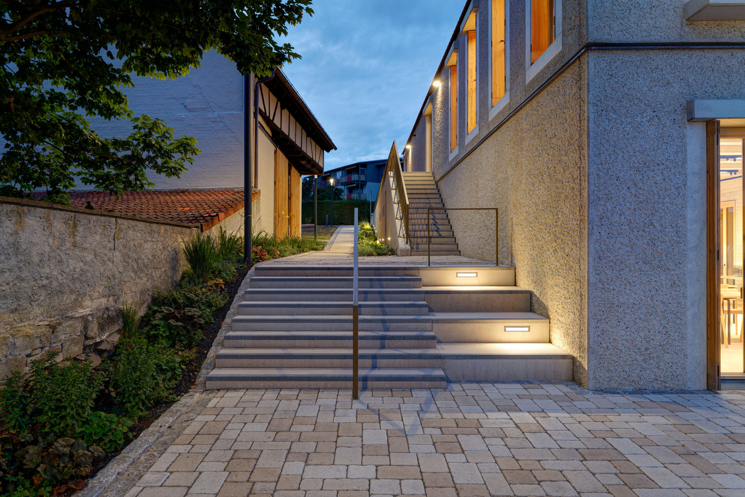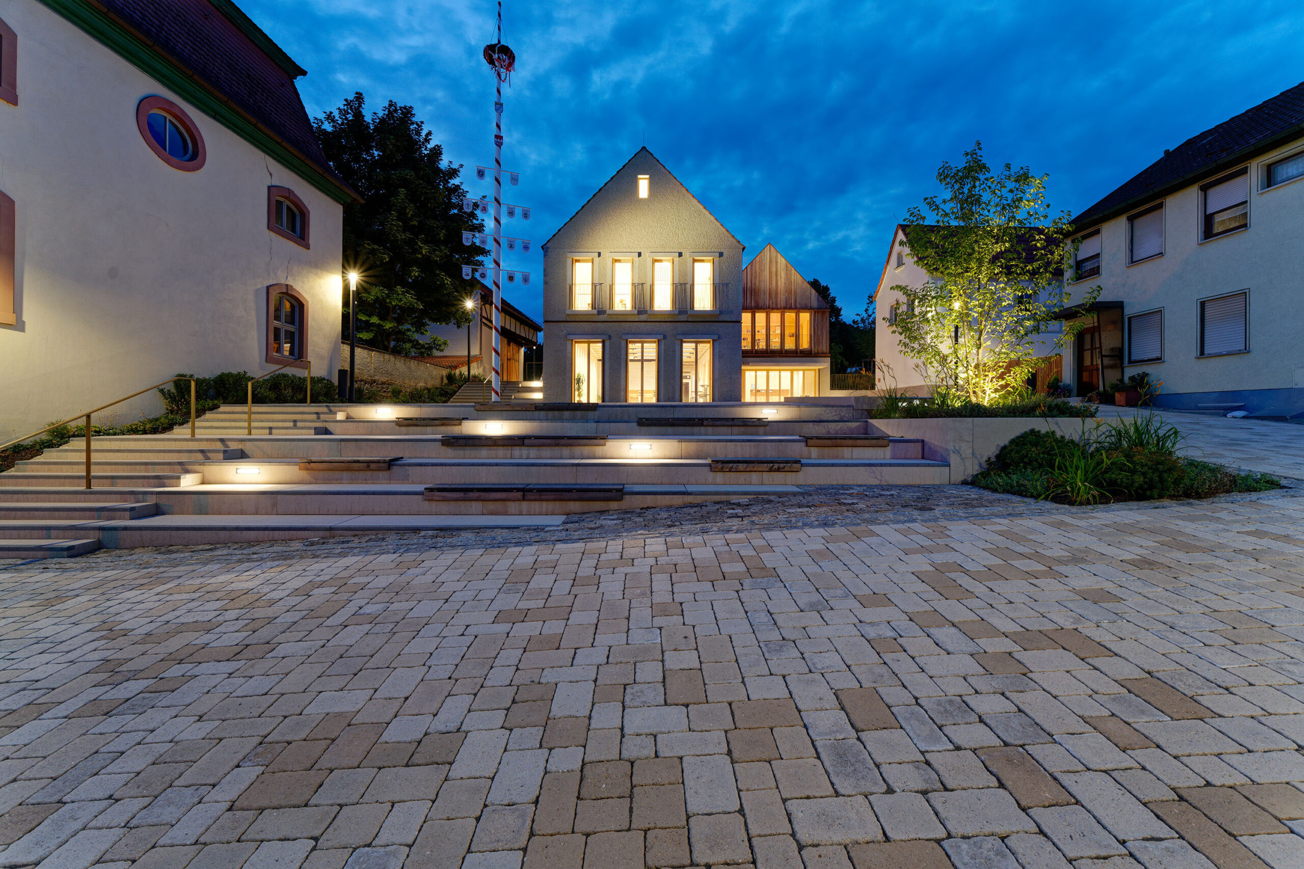 So versteht sich die Lichtgestaltung als stille Begleiterin der Architektur: Sie stärkt die räumliche Qualität, respektiert die Materialität und schenkt der neuen Mitte Niederwerrns auch in den Abendstunden eine selbstverständliche, freundliche Präsenz.