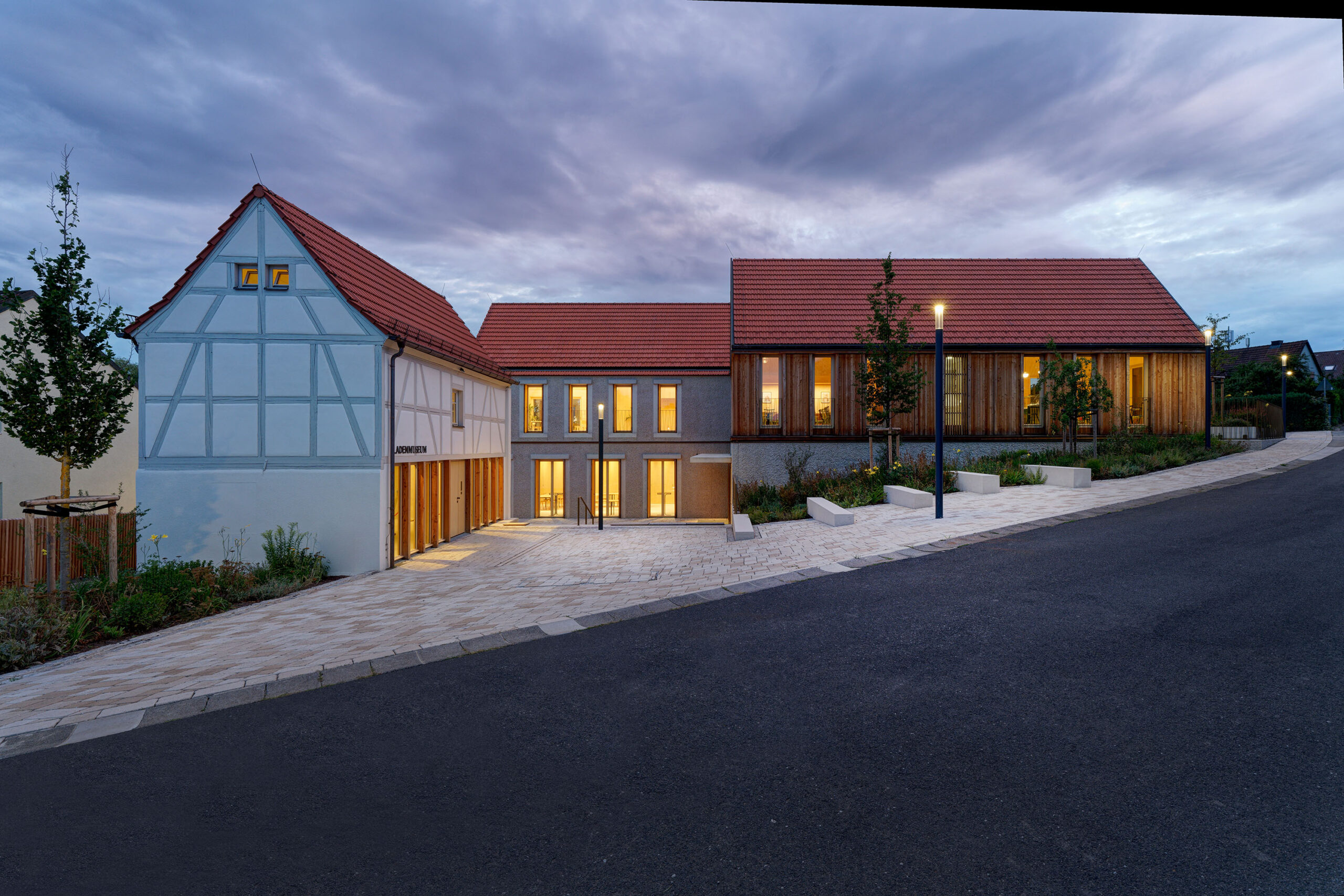 Mit dem Bürgerzentrum „MittenIm“ hat Niederwerrn eine neue Mitte erhalten – einen Ort, der Tradition und Zukunft verbindet. Zwischen Altort und Siedlungsgebiet entstand ein lebendiges Ensemble mit Bürgersaal, Café, Vereinsräumen, Museum und der sogenannten „Energiescheune“. Architektur und Materialwahl – geprägt von Recyclingbeton und Holz – setzen ein Zeichen für nachhaltiges Bauen und ein starkes Miteinander im ländlichen Raum.