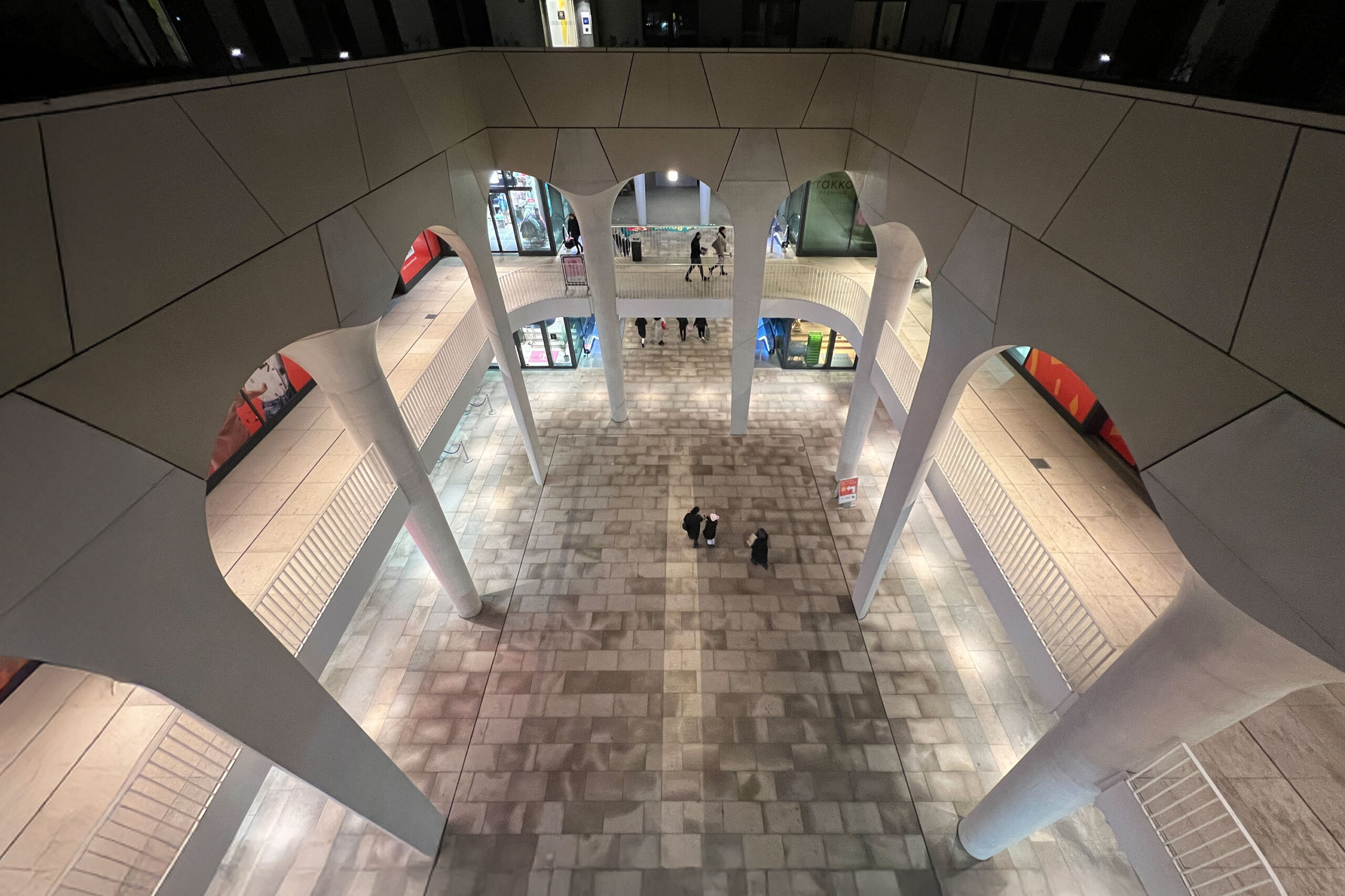Die Gebäude zum Einkaufen, Arbeiten und Wohnen werden eine einheitliche Formensprache haben, mit der Handschrift der Architekten Störmer Murphy und Partner. Die skulpturalen Stützen der umlaufenden Kolonnaden als ausdrucksstarkes Gestaltungselement sollen durch die Beleuchtung hervorgehoben werden und so die abendliche Raumgestaltung des Mahatma-Gandhi-Platzes prägen. Auch die Gewölbedecken der Kolonnaden werden durch indirekte Beleuchtung aufgehellt und schaffen zusammen mit der Brillanz direkter punktueller Ausleuchtung hochwertige Flanierzonen.